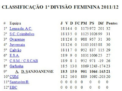 Na primeira época na 1ª divisão, conseguimos o objectivo (manutenção: 9º lugar) e só em 3 jogos de 18, não conseguimos ser competitivas e discutir o resultado até ao fim!